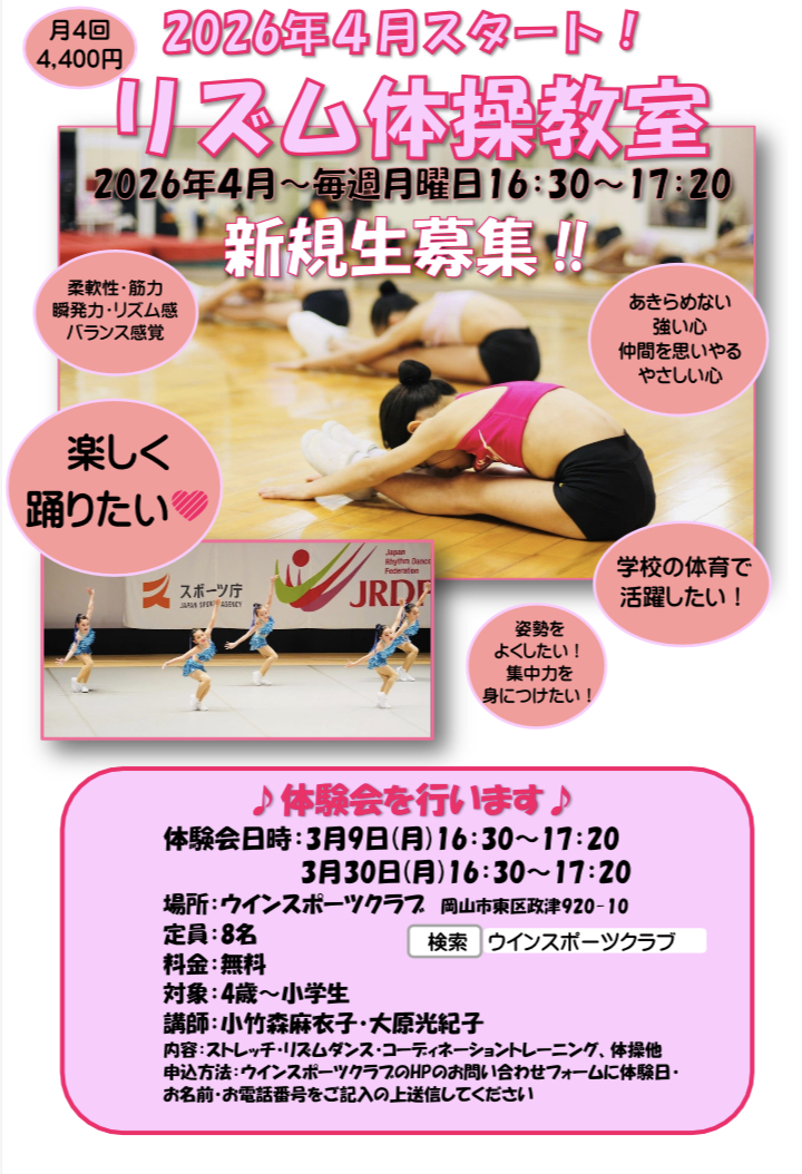 4月からウインスポーツクラブで新しいクラスをスタートします❣️