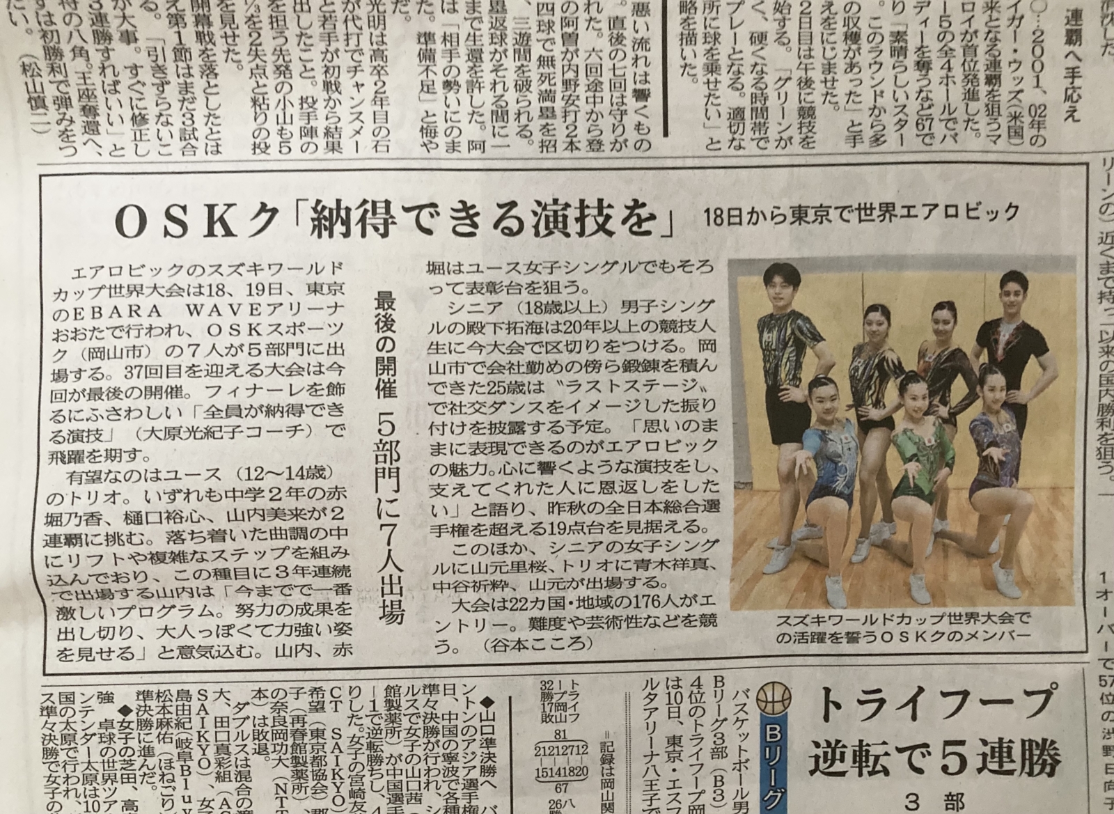 今週末、東京で開催されるスズキワールドカップ2026第37回エアロビック世界大会に、7名の選手が日本代表として出場します。